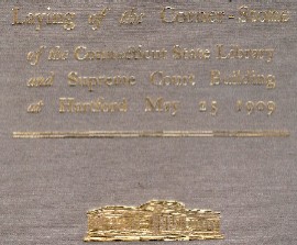 "Laying of the Corner-Stone of the Connecticut State Library and Supreme Court Building at Hartford May 25, 1909" Hardcover book with gilt title