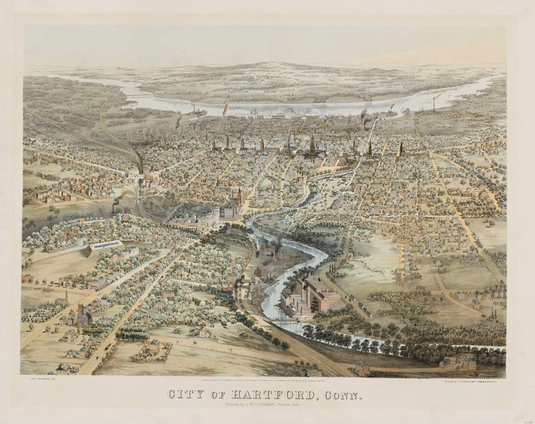 Spectacular Birds-Eye View of the City of Hartford in 1864 by John Bachmann