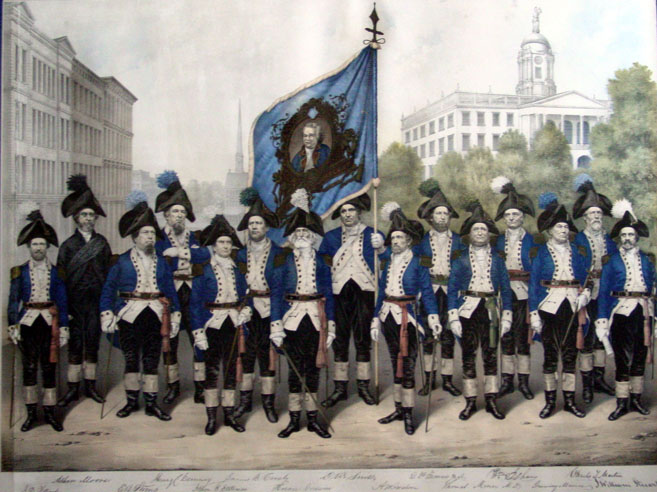 Very Rare Print of 1861 of Putnam Phalanx In Front of Old State House in Hartford