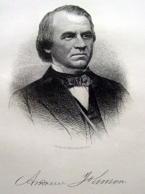 Offered here is a nice framed dated autograph of President Andrew Johnson. Johnson is most famous for being elected Vice President with Abraham Lincoln in 1864, succeeding Lincoln after the assassination and then being the first President to be impeached in 1868, but exonerated by one vote in the Senate trial. At the start of the Civil War Johnson was the United States Senator from Tennessee and became a Union hero when his state seceded but he stayed in the Senate. He was subsequently named the War Governor of Tennessee when the Union forces took control of that state. Below are close-ups of the engraving and Johnson's signature in pencil that is dated November 29, 1869.