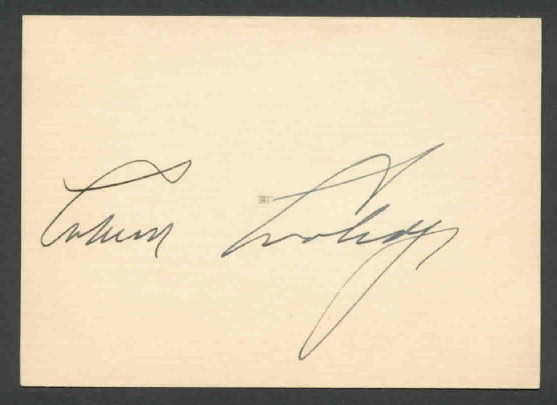 This nice 2 1/2 inch by 3 1/2 inch card has a nice clean and big signature by President Calvin Coolidge. It would go very nicely with a picture of President Coolidge to form a nice display item.