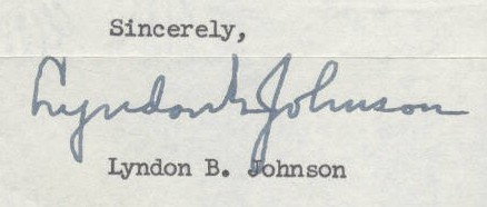 This appears too routine of correspondence to garner a personal signature of Johnson and is likely a secretarial signature. Price: $60/SOLD |