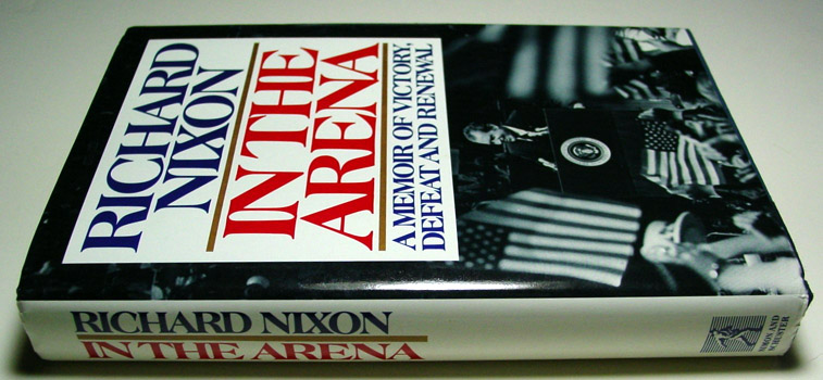 Here is a wonderful copy of Richard Nixon's "In The Arena" signed for his Presidential Library in Yorba Linda, California. Richard Nixon in this book candidly reflects on his career and discusses such topics as the Soviet Union, Gorbachev, national security, Watergate, and the inside poop on his resignation from the office of President. Price: SOLD |