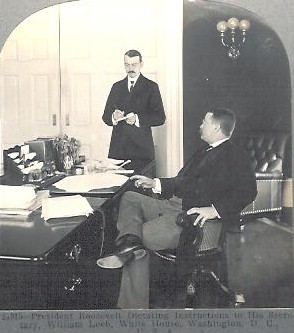 TR dictating to William Loeb II in 1905 photograph and William Loeb III, his godson the powerful publisher