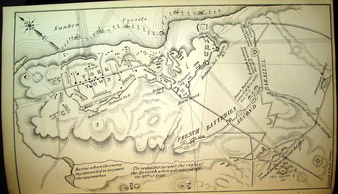 Joel Munsell Albany 1850 First edition, 8vo, pp. x, 431; engraved frontis portrait, 4 lithograph maps; newly rebacked, in orig. blindstamped brown cloth covers. Lamb was attached to Montgomery's detachment during Arnold's attack of Quebec, served under Arnold after Montgomery's death and played an active role throughout the Revolutionary years. Howes L-165; Sabin 39521: ""Narrates the proceedings of the Sons of Liberty prior to and during the Revolutionary War." Below is a map of the decisive Revolutionary War Battle of Yorktown and a portion of the rare Connecticut battle map in the volume picturing the area between Bridgeport and Norwalk.