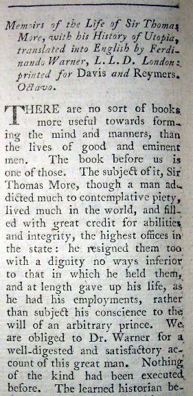 contributions include a book review of the "Memoirs of the life of Sir Thomas