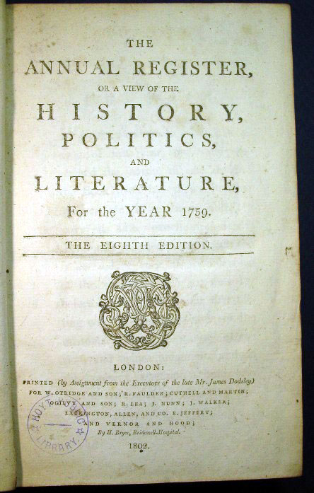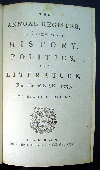 spine covering off (B). This 1759 volume of the Annual Register is also