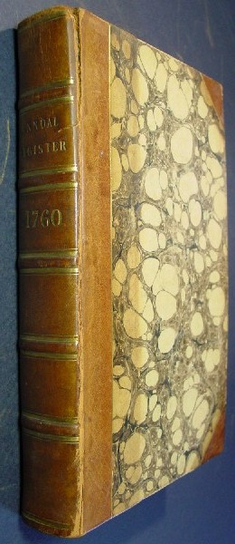 An interesting volume and another tour de force by Edmund Burke. The 1760 volume is also available as a part of the 1758 through 1791 set in a first edition and in the 1758 through 1773set in a later edition. Price: $85 Pay securely with credit card through PayPal by clicking the button below |
