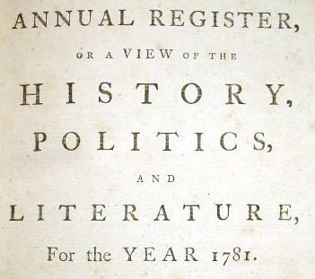 The account of the Battle of Yorktown ends with speculation on it effect, as shown below, and it was probably written by Edmund Burke, an opponent of the war who saw that this was the final event, for he says of Yorktown that it