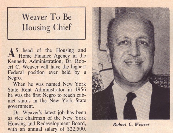 Democratic Digest Special 1961 Inaugural Issue Touts New Housing Chief as the "highest Federal position ever held by a Negro"