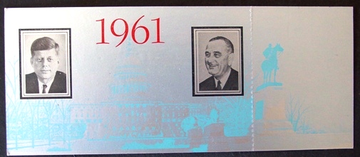 This is a choice unused ticket to the 1961 inauguration of John F. Kennedy and Lyndon B. Johnson which entitled the bearer, an "Honored Guest," to seating at the White House stands to witness the inaugural parade. January 20, 1961 was very cold and it is thus understandable that some VIPs chose not to sit out in the cold for hours. Thus the fine condition of this ticket. The regular parade tickets were along the parade route before the White House and had a price listed on them because they had to be purchased by the general public. Price: SOLD