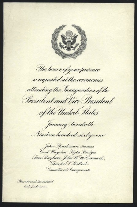 1961 Kennedy Johnson Inaugural Invitation Invitation That Came With Tickets