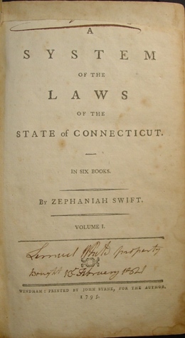 This first legal treatise published in America which was read by the Founders of the Nation is an important item for legal, Americana and Connecticut collectors. Price: $950 Pay securely with credit card through PayPal by clicking the button below