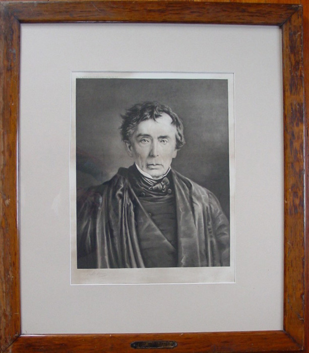 The frame is 27" x 31" and the portrait itself is 13" x 16." The large old frame and glass are heavy and it will cost $25 to ship it so it will arrive intact. This is a very nice 112 year old engraving in an old period frame of one of the more important political and legal figures of American history. We could not find any other examples of this print listed in museum catalogues or offered by print dealers so it may be quite rare. Price: SOLD |