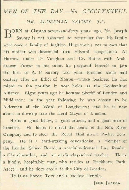 Mr. Alderman Savory, J. P. "A New Lord Mayor"