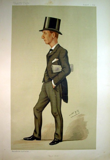 Mr. Herbert Henry Asquith, Q. C., M. P. "East Fife" Future Prime Minister of England This is an original 1891 Vanity Fair print by Sir Leslie Ward (signed as "Spy") of lawyer and Member of Parliament Herbert Henry Asquith, known during his lifetime as H. H. Asquith, who later went on to fame as Prime Minister of England from 1908 though 1916, the start of World War I. His accomplishments as Prime Minister included the first enactment of the social welfare programs that are the staple of Western democracies, Social Security for the elderly and Unemployment Compensation for those who have lost their jobs. The print comes already matted to a standard frame size of 16 x 20 inches and encased in a protective plastic sleeve. It also comes with a typed copy of the Jehu Junior biography that accompanied the print upon its publication in 1890. This time the perceptive Junior and the conventional wisdom get it wrong, for the biography says,