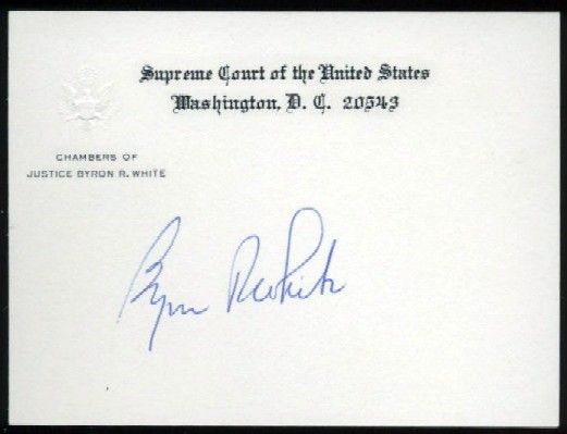 Justice Byron R. White Signed Supreme Court Chambers Card