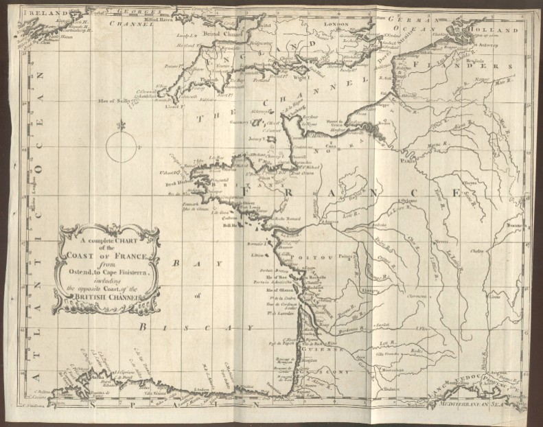 "A Complete Chart of the Coast of France. From Ostend, to Cape Finisterra, Including the Opposite Coast, of the British Channel."