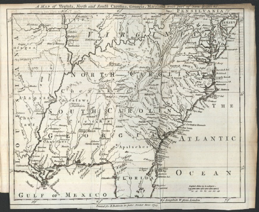 "A Map of Virginia, North and South Carolina, Georgia, Maryland with part of New Jersey & c."