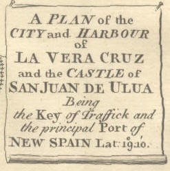 "A Plan of the City and Harbour of La Vera Cruz and the Castle of San Juan de Ulua Being the Key of Traffick and the Principal Port of New Spain Lat: 19°:10'"