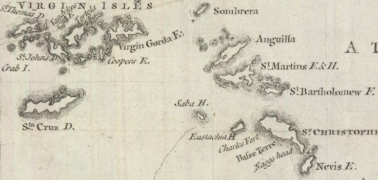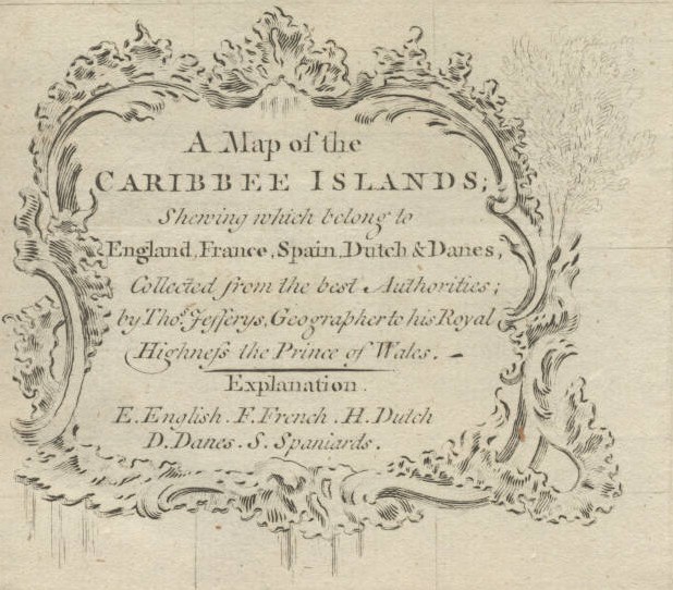 "A Map of the Caribbee Islands; Shewing which Belong to England, France, Spain, Dutch & Danes, Collected from the Best Authorities; by Thos. Jefferys, Geographer to His Royal Highness the Prince of Wales"