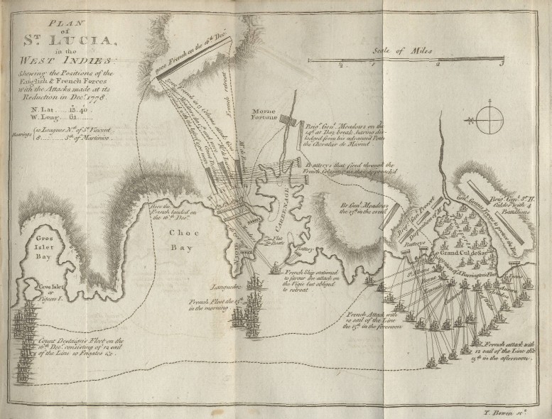 "Plan of St. Lucia, in the West Indies: Shewing the Positions of the English & French Forces with the Attacks Made at its Reduction in Decr. 1778"