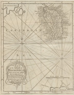 Martinico & Guadaloupe Shewing their True Bearing & Distance from each