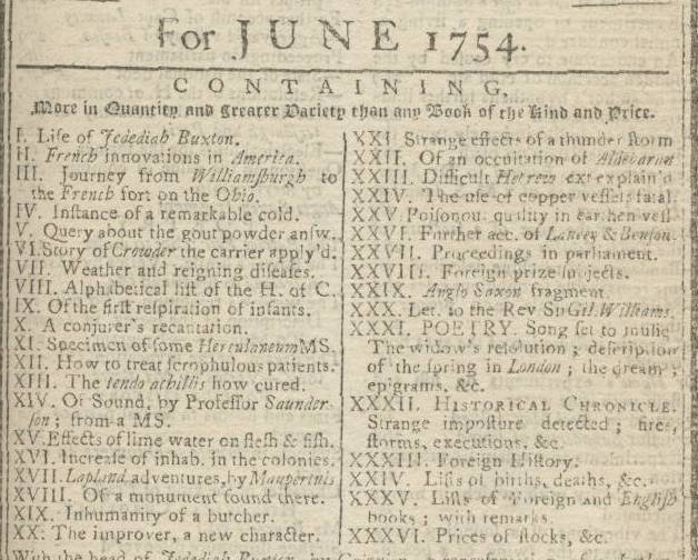 This amazing extensive report is the first international publicity the famous George Washington received. It is an account of his journey into the wilderness from Williamsburg, Virginia to the French fort (Fort Duquesne) in what is now downtown Pittsburgh, Pennsylvania. This account is based on Washington's report to Governor Dinwiddie and it contains numerous references to Washington, as shown below. This fascinating account made George Washington well known in Great Britain, as shown by the references to him in the July and September issues of Gentleman's Magazine. Above is a picture of the start of the report and below are the top of two of the three pages that follow.