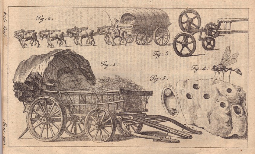 Below are an article and graphic on opening the cornea and a full page plate on wagons and bees. The called for foldout map is not present.