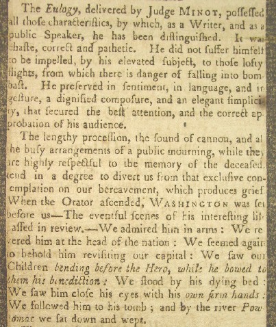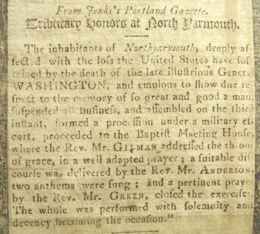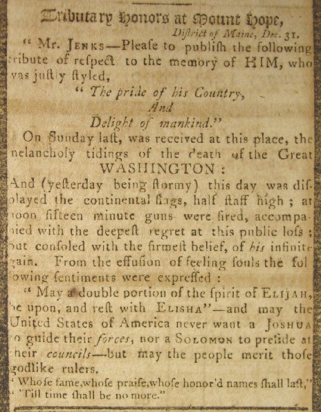 Here are some more excerpts in the newspaper on George Washington's then very recent death.
