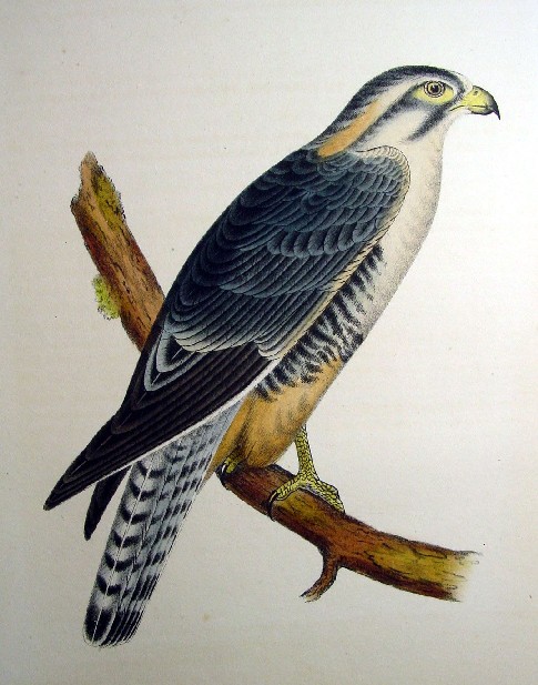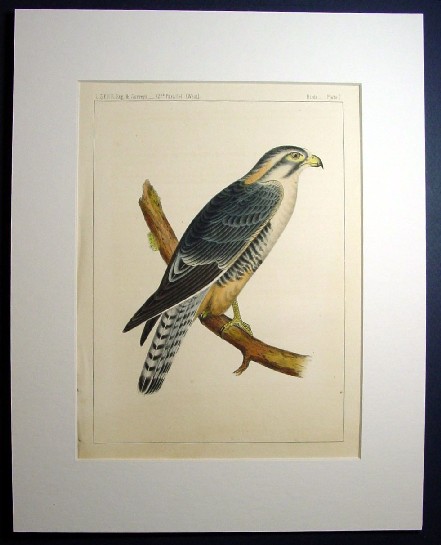 This beautiful bird of prey says on the top border  "U.S.P.R.R. Exp. & Surveys --- 32nd Parallel"  and  "Birds --- Plate I."  Some Alpomado Falcons are on the endangered species list in the United States.