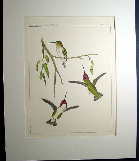1850s Hand Colored Stone Lithographs of Birds of the West Costa's Hummingbird