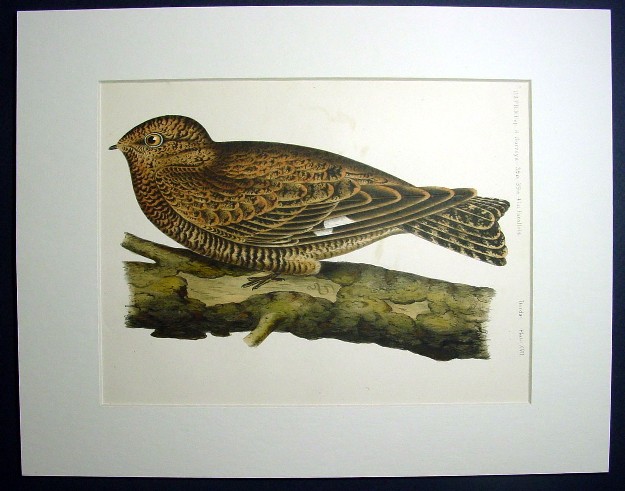 1850s Hand Colored Stone Lithographs of Birds of the West Western Nighthawk
