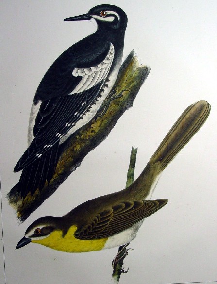 These pair of woodpeckers are called Williamson's Sapsuckers, Sphyrapicus thyroideus. On the upper margin of the print it says "U.S.P.R.R. Exp. & Surveys ---32nd Parallel (East)" and "Birds--- Plate XXXIV."