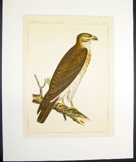 This is one of the three Swainson's Hawks we offer, also known by its scientific name Buteo Swainsoni. On the upper margin of the print it says "U.S.P.R.R. Exp. & Surveys ---38th, 39th, 41st Parallels" and "Birds --- Plate XII."
