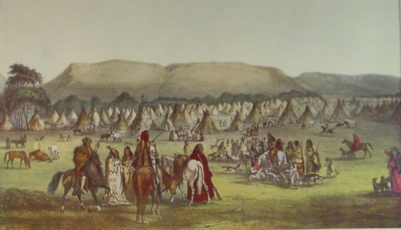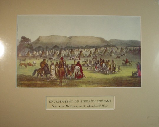 Bodmer's "ENCAMPMENT OF PIEKANN INDIANS Near Fort McKenzie, on the Muscleshell
