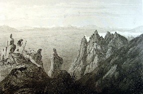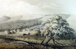 Original 1850s Native American Indian Prints "Reports of Explorations and Surveys to Ascertain the Most Practicable and Economical Route for a Railroad from the Mississippi River to the Pacific Ocean." Below is our inventory of Indian prints from the famous 1850s U. S. government survey headed by Secretary of War Jefferson Davis to determine the best route for the first transcontinental railway. The railroad was not completed until 1867 because of political conflicts, including the Civil War, which Davis played a major role in as President of the Confederate States of America. With the exception of the first one shown below they are all color lithographs and they are all matted to a standard frame size of 11 x 14 inches so you do not have to get an expensive custom frame to properly display these prints. Click on the pictures or titles below to get more information on each of these prints. The Romantic Vision of Indian With Spectacular View The Tribes of Mojaves, Navajos and Zunis