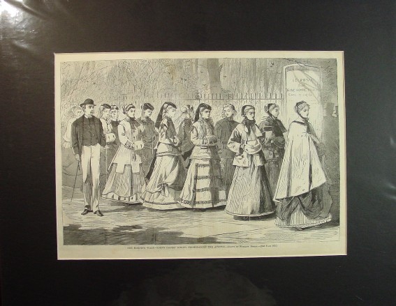 1868 Winslow Homer Matted Wood Engraving "THE MORNING WALK - YOUNG LADIES' SCHOOL PROMENADING THE AVENUE"
