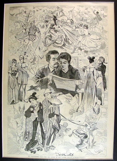 Winslow Homer 1868 Matted Wood Engraving "St. Valentine's Day - The Old Story In All Lands"