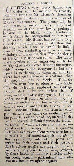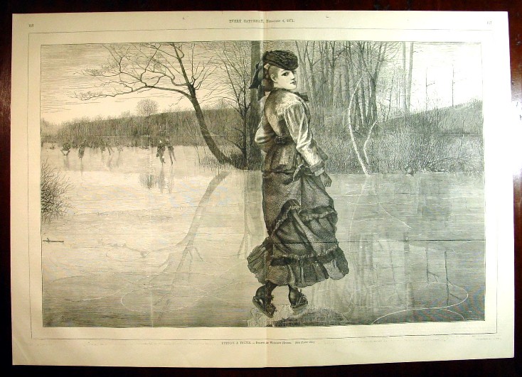 Winslow Homer Every Saturday Wood Engraving "Cutting A Figure"