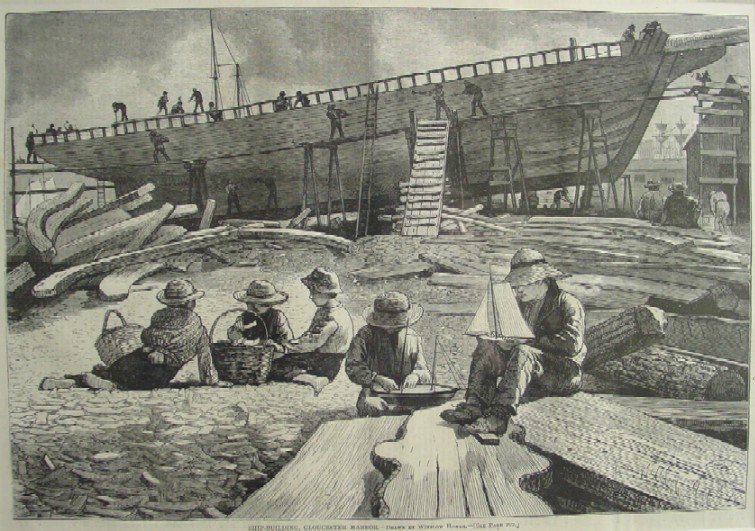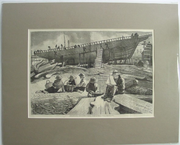 1873 Winslow Homer Wood Engraving "SHIP-BUILDING, GLOUCESTER HARBOR"