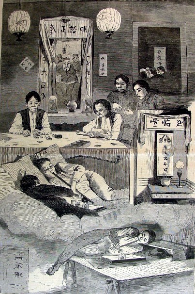 Chinese clubhouse in New York City at which opium smoking is prominently shown