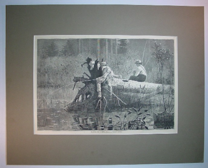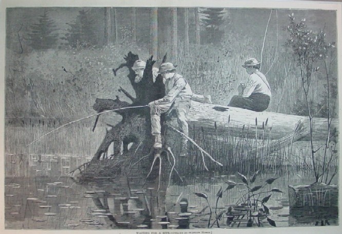 1874 Winslow Homer Wood Engraving "Waiting For A Bite"
