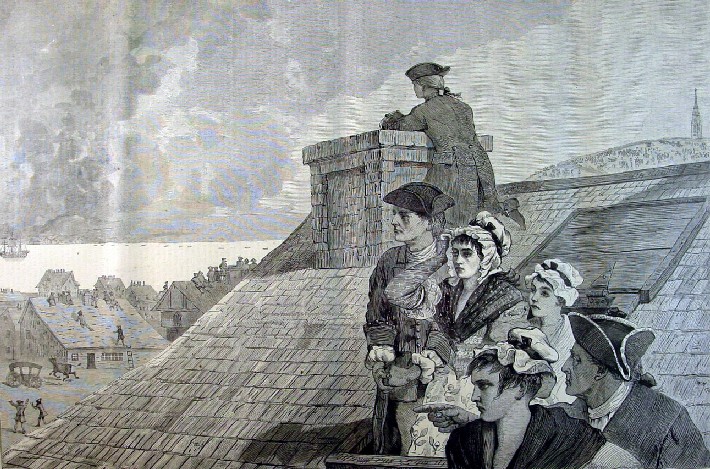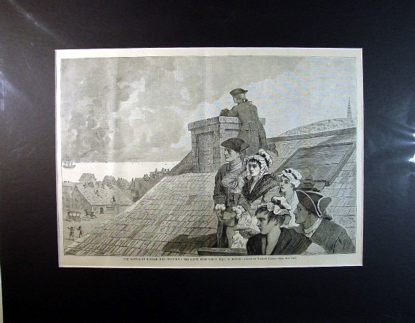 1875 Winslow Homer Matted Wood Engraving The Battle of Bunker Hill - Watching The Fight From Copp's Hill, In Boston