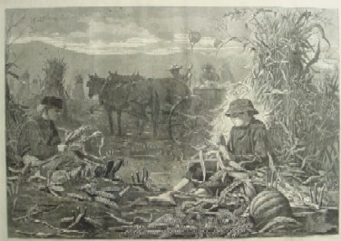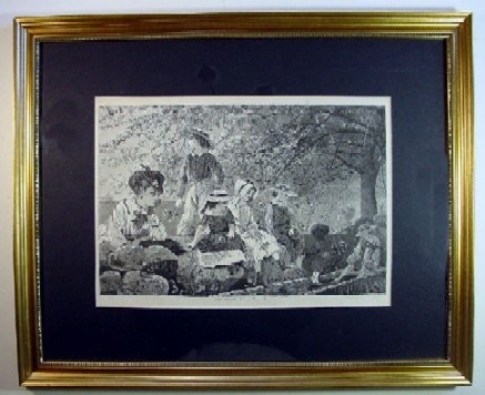 That is one of the reasons these prints have found their place in the History Gallery. Another is that they are lovely engravings many of which capture the bucolic ambiance of bygone days and are relaxing and pleasing to contemplate. This web page and the next page provide examples of Homer's original genre wood engravings from Harper's Weekly and the third page contains Homer's rare 1870 and 1871 engravings from Every Saturday. The final page contains his Civil War engravings from the battle and home fronts. A few of the engravings have been framed, as shown below, and most of the remainder have been matted to standard frame size (16 x 20 inches or 11 x 14 inches) so they can be easily and inexpensively framed, and are protected by protective plastic sleeves. Click on the pictures or titles of the wood engravings and it will take you to a page with greater details and price. Winslow Homer's Famous Double Page "Snap-the-Whip"