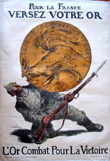 one a large gold coin with a feisty cock rooster weighs down one of the