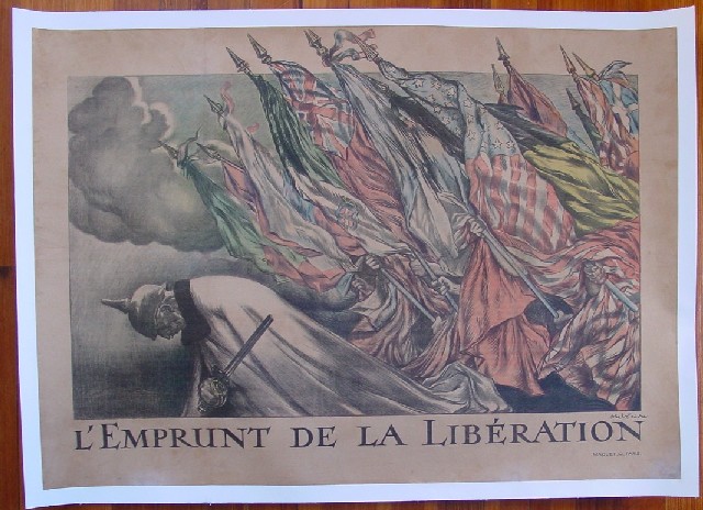German Kaiser with a broken sword on his knees bowing with the victorious