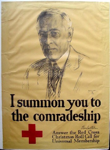 pictured in a charcoal drawing and endorses the Red Cross Christmas Roll